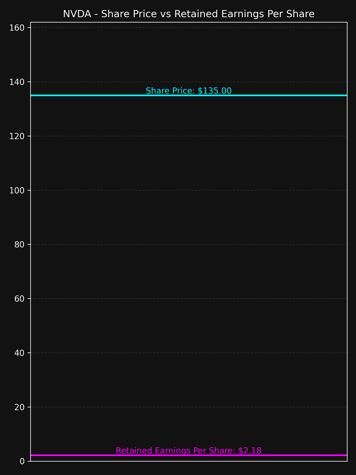 As you can see, NVDA has almost no money relative to its price. The market’s pricing of NVDA is derived principally from the money it is supposed to make in the future, rather than the present value of the company.