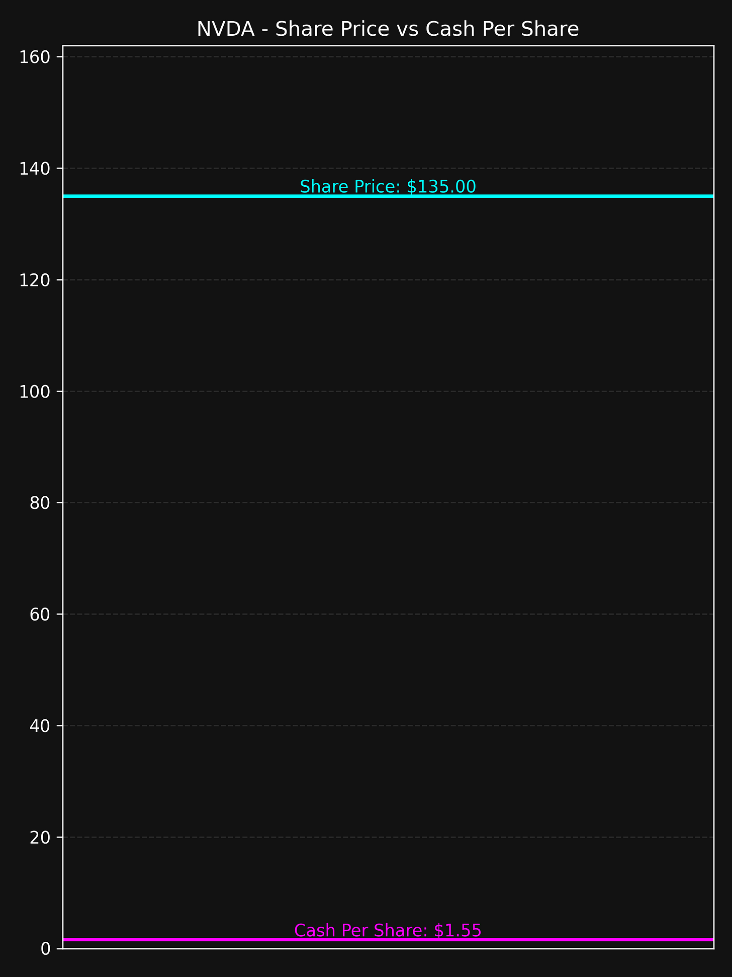 Now that we’ve seen that buying (even when the fundamental value of the shares was at its lowest) has paid off, let’s take a look at how much money NVDA actually has: