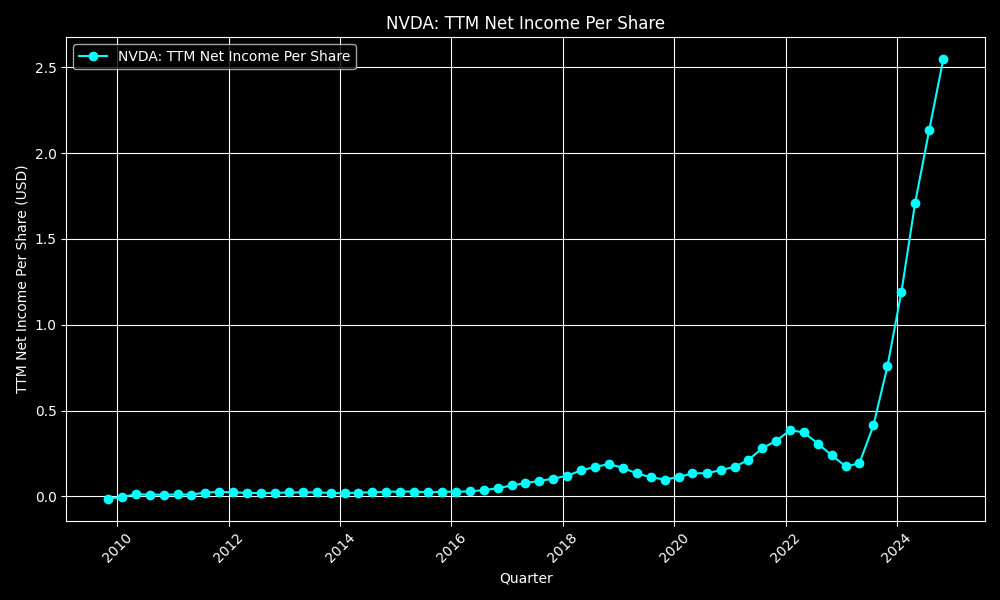 The bottom line is what those investors are getting, so to speak (NVDA’s net income over the previous year (trailing twelve months))